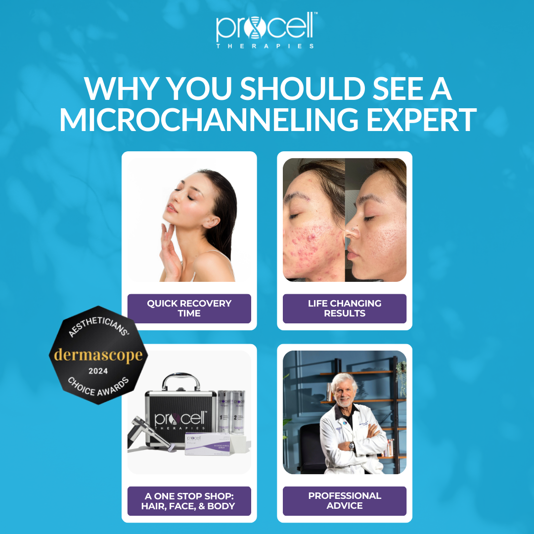 Procell Therapies has introduced a groundbreaking solution for replenishing stem cell cytokines and growth-factors. Microchanneling creates countless tiny channels in the skin, stimulating the body’s natural immune response. The application of Procell Therapies’ human growth factor serum through these microchannels enhances absorption and triggers accelerated healing.
